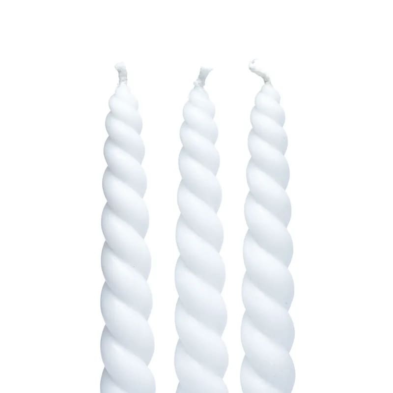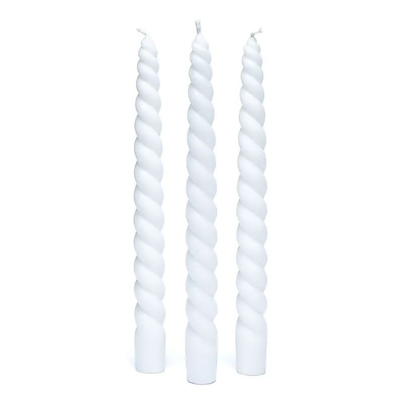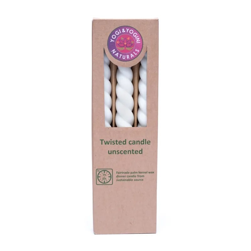 Valged, keerukujuga, 100% looduslikust steariinist valmistatud lõhnaküünal.