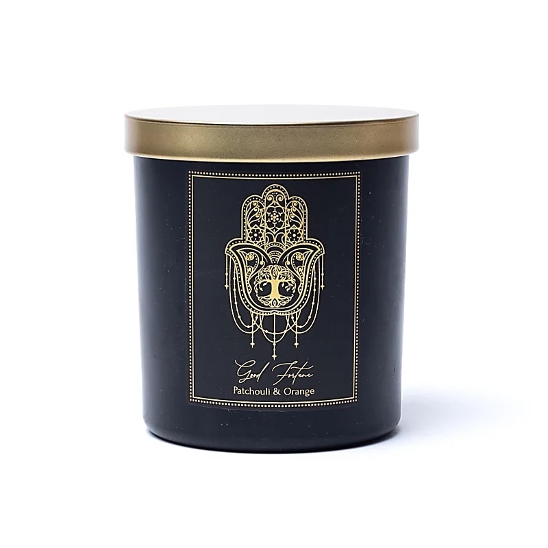 Kauni kuldse kaanega saad küünla sulgeda, leek särab salapäraselt tumedas klaaspurgis, sildil kuldsed "line art" stiilis joonistused.
